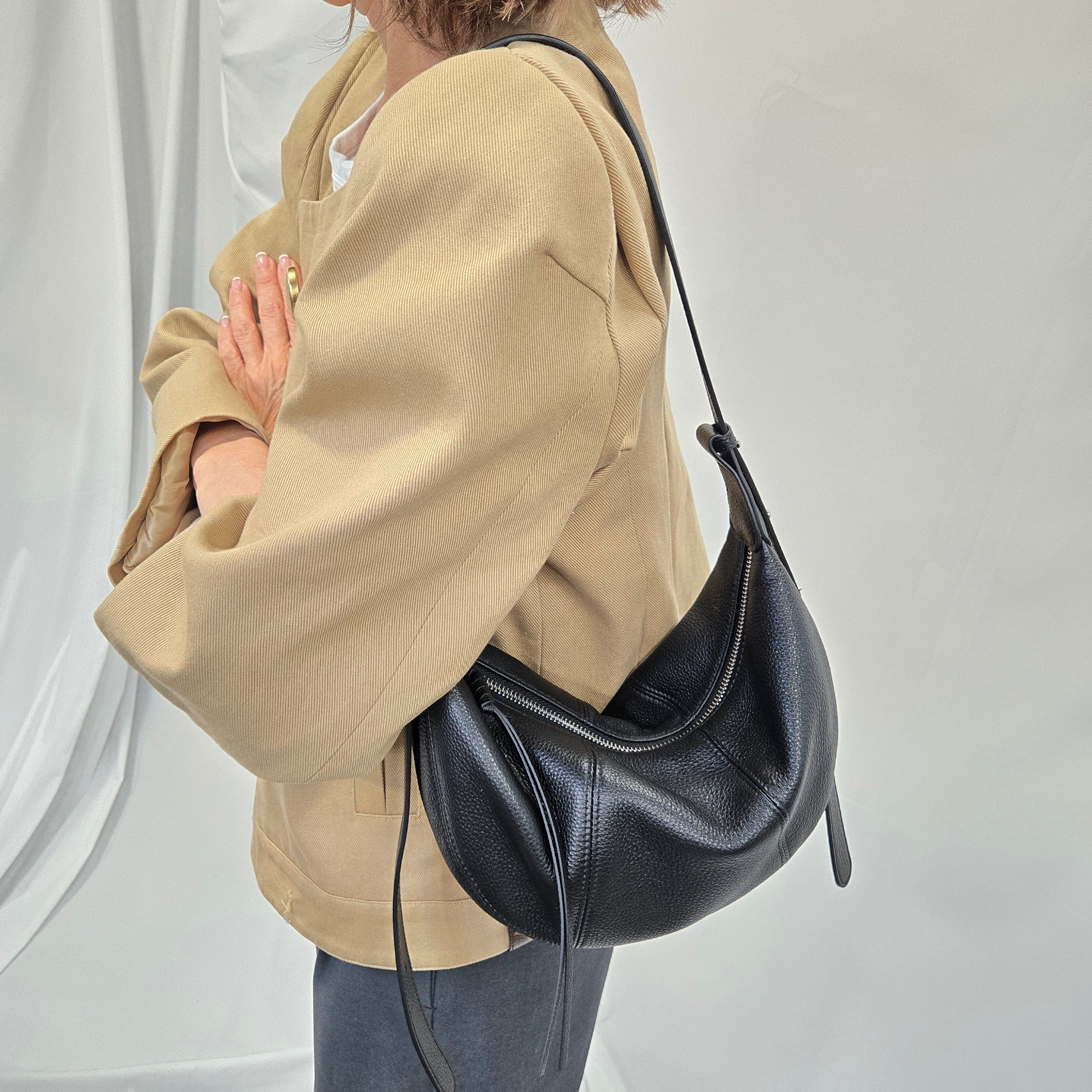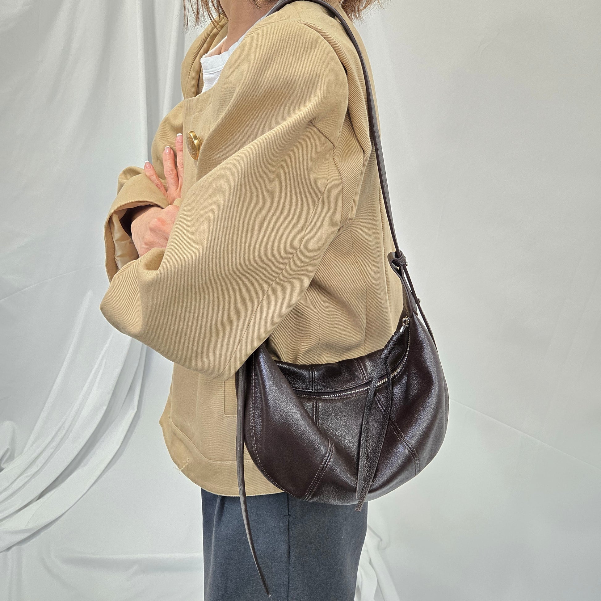 HOBO 半月包, 垂感設計,皮質非常軟熟,斜揹顯型格,上膊顯優雅,一個設計輕鬆配搭不同造型。